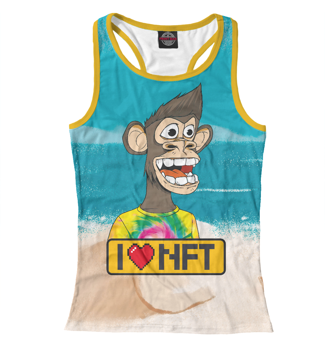 Женская майка-борцовка с принтом «Ape coin i love NFT»
