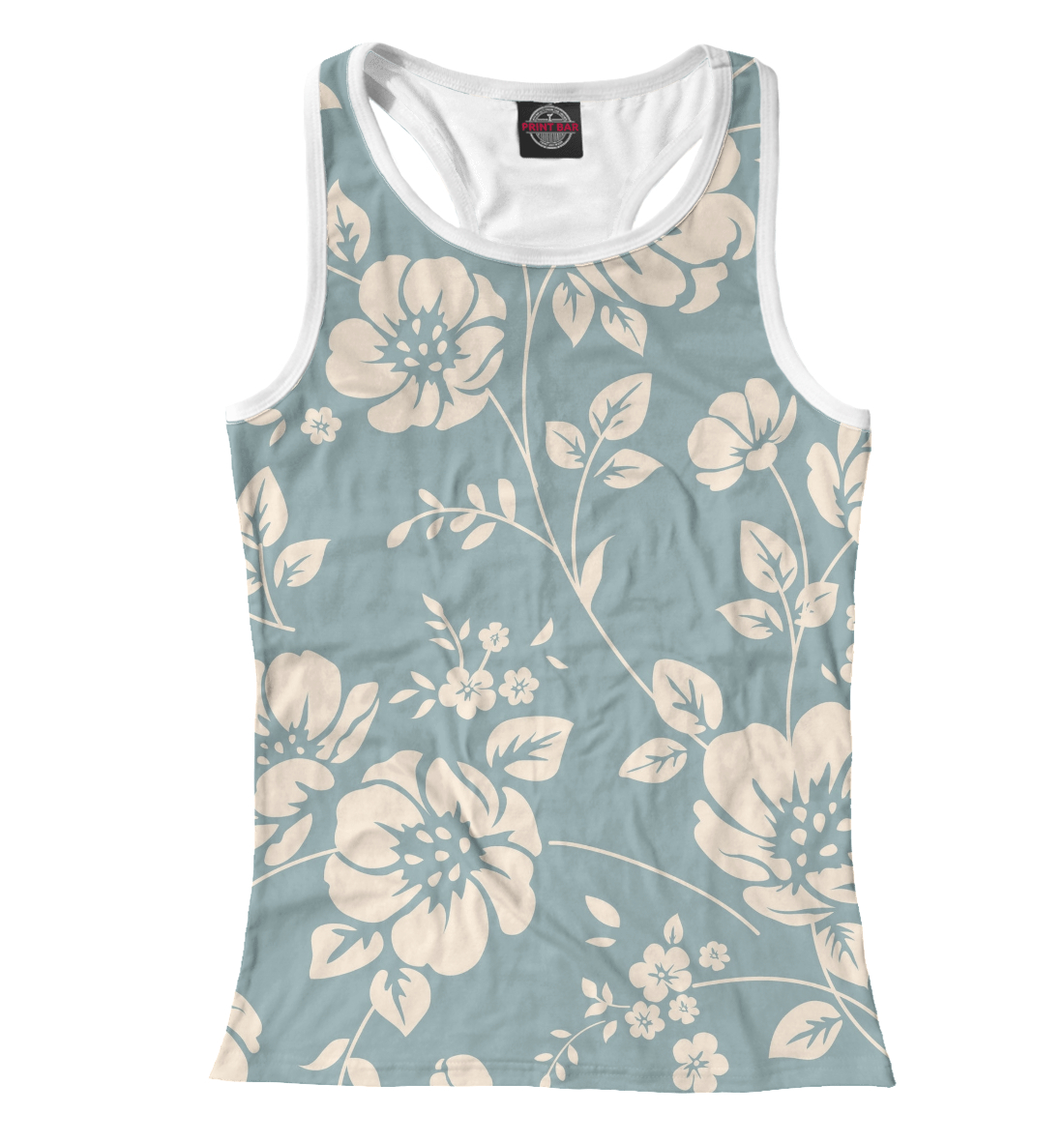 Женская майка-борцовка с принтом «Бежевые цветы на синем фоне»