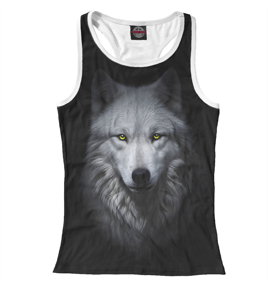 Женская майка-борцовка с принтом «Белый волк БелоБог»