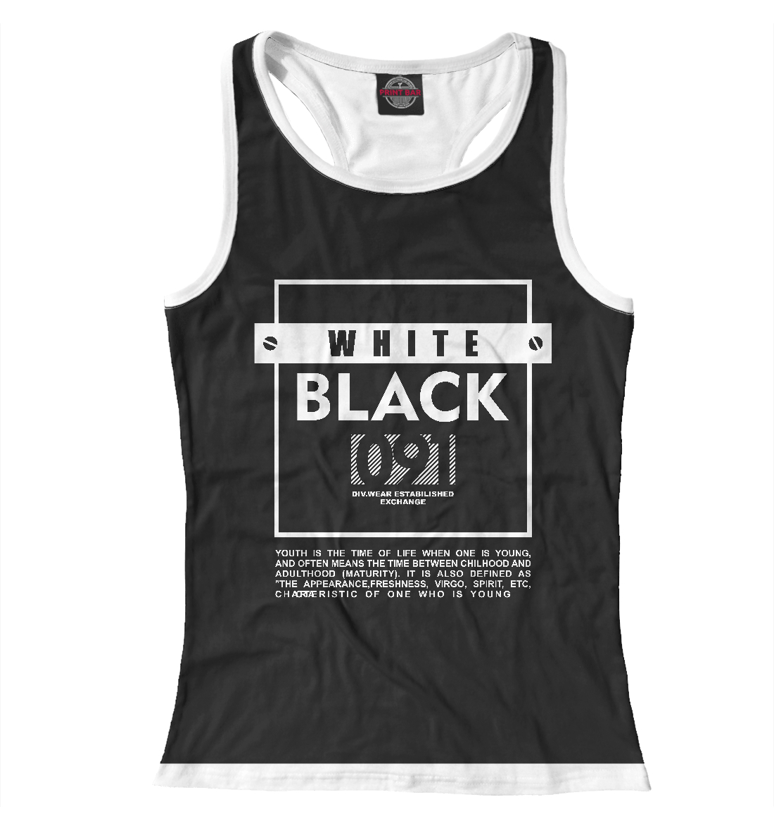 Женская майка-борцовка с принтом «Black and white 091»