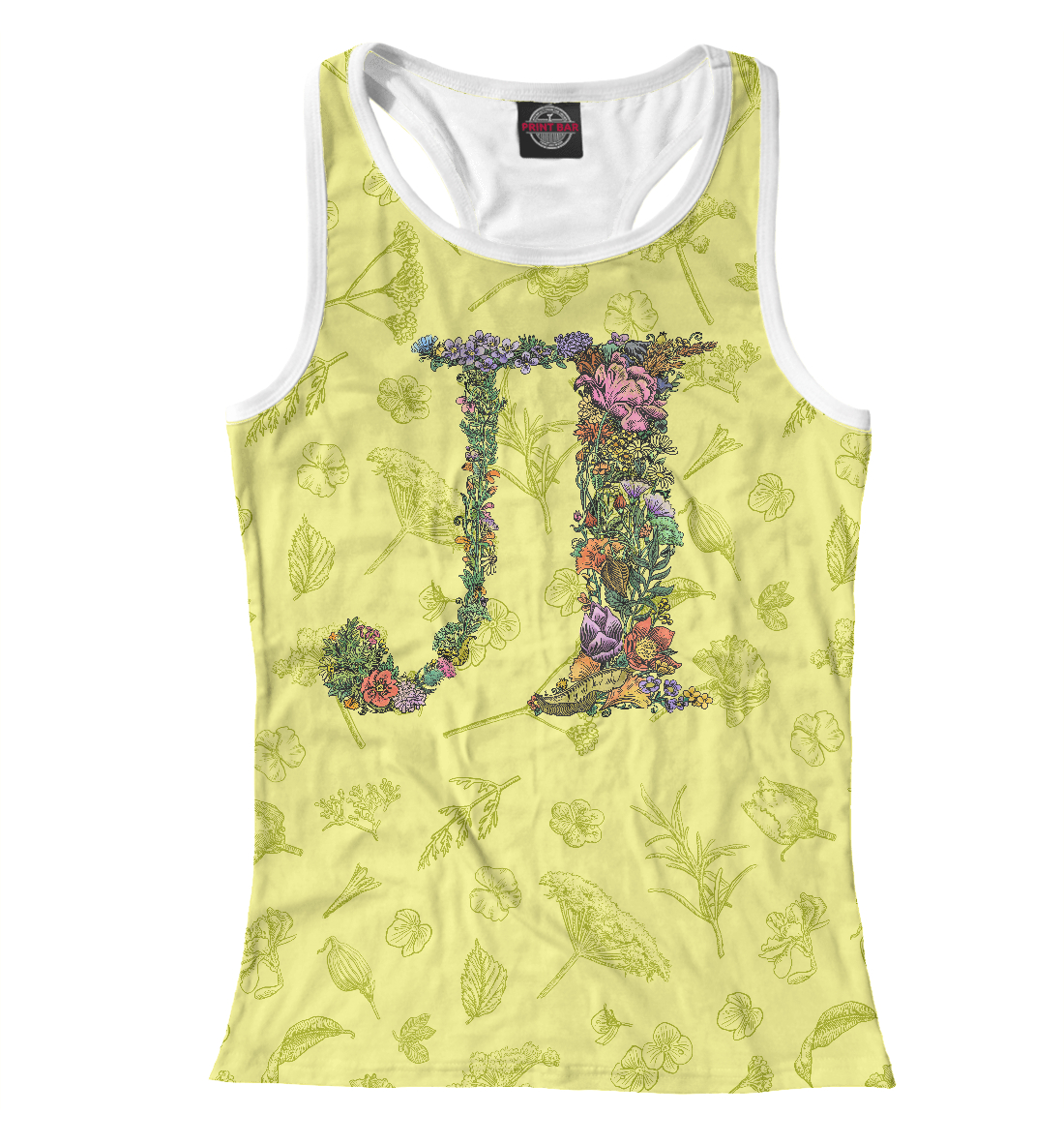 Женская майка-борцовка с принтом «Буква л на желтом фоне с цитатой»
