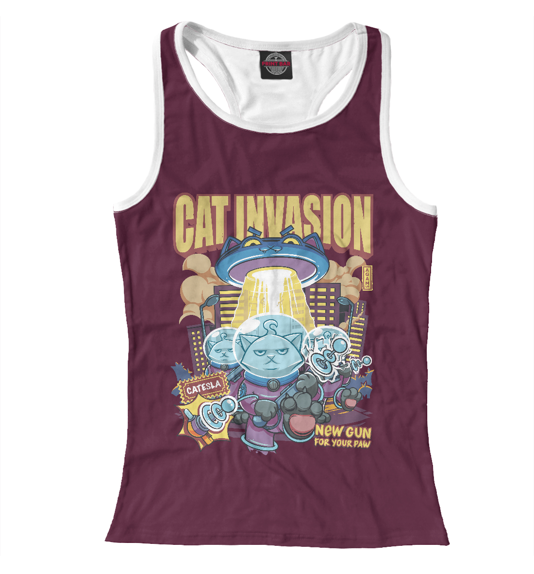 Женская майка-борцовка с принтом «Cat Invasion: Tesla Gun»