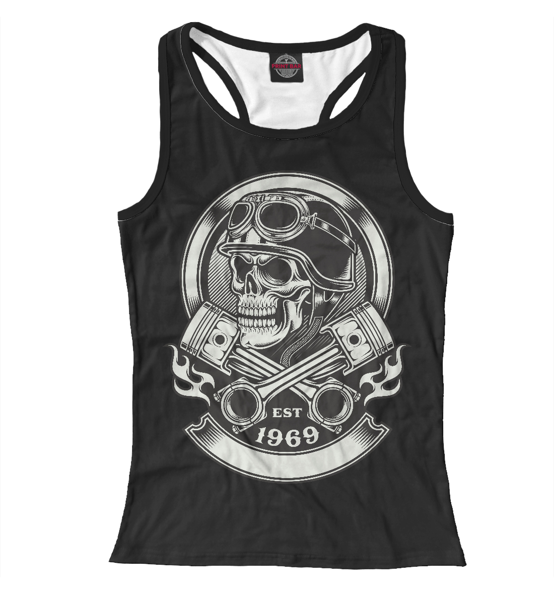 Женская майка-борцовка с принтом «Череп в каске»