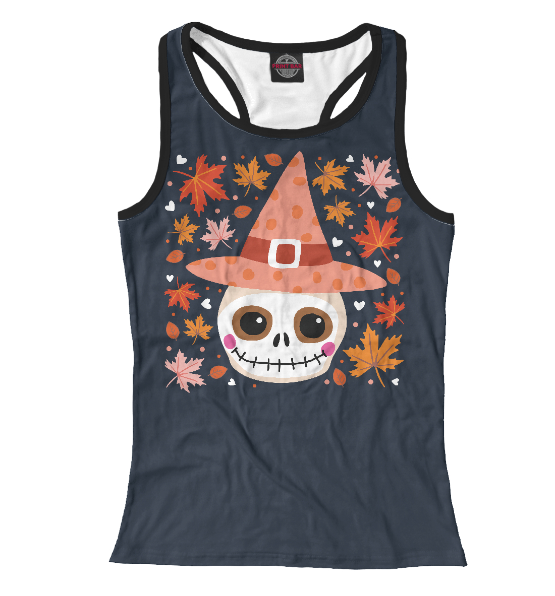 Женская майка-борцовка с принтом «Череп в шляпе ведьмы»