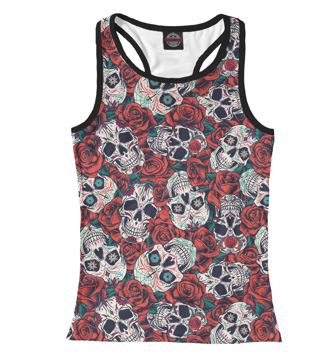 Женская майка-борцовка с принтом «Черепа в Розах»