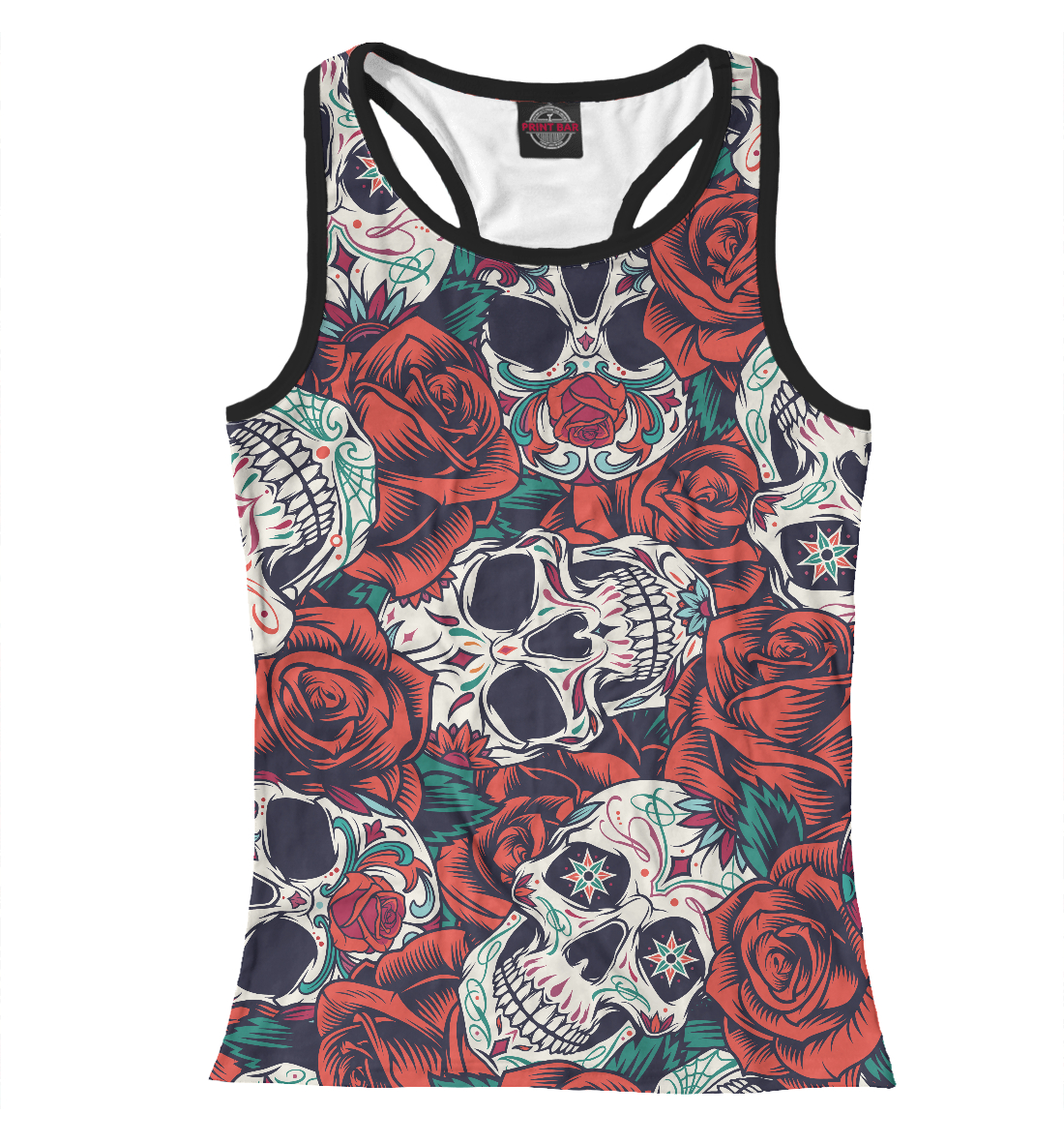 Женская майка-борцовка с принтом «ЦВЕТОЧНЫЕ ЧЕРЕПА»