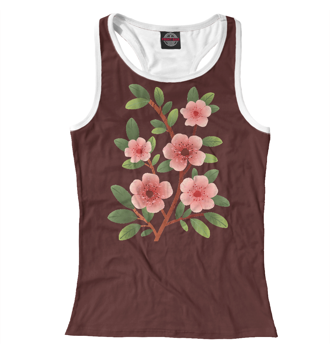 Женская майка-борцовка с принтом «Цветущая ветка с листьями»