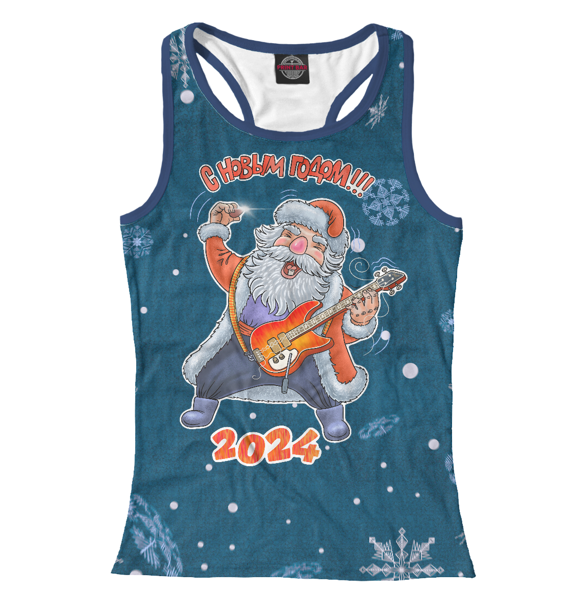 Женская майка-борцовка с принтом «Дед Мороз играет на рок гитаре»