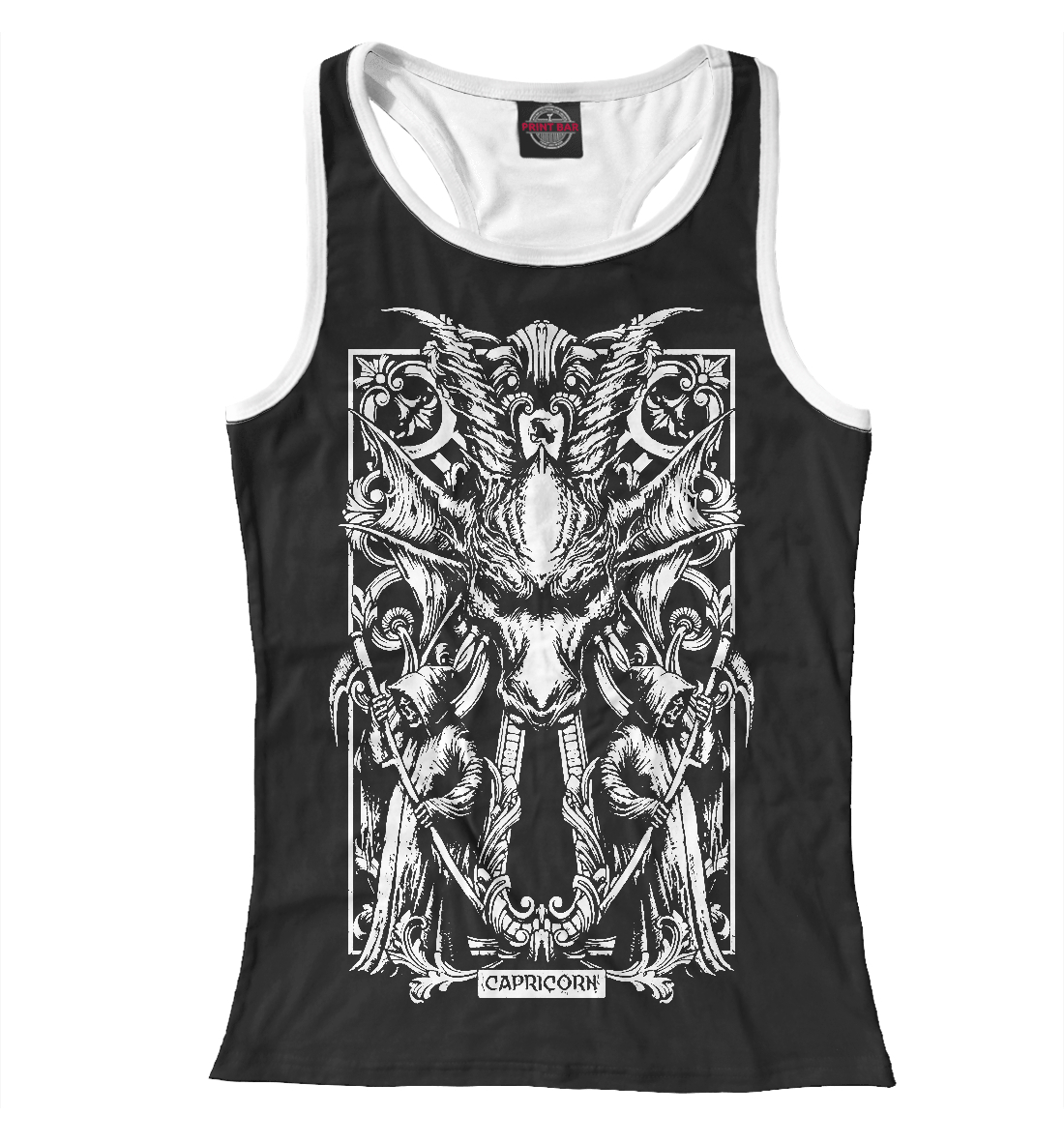 Женская майка-борцовка с принтом «Демонический козерог»
