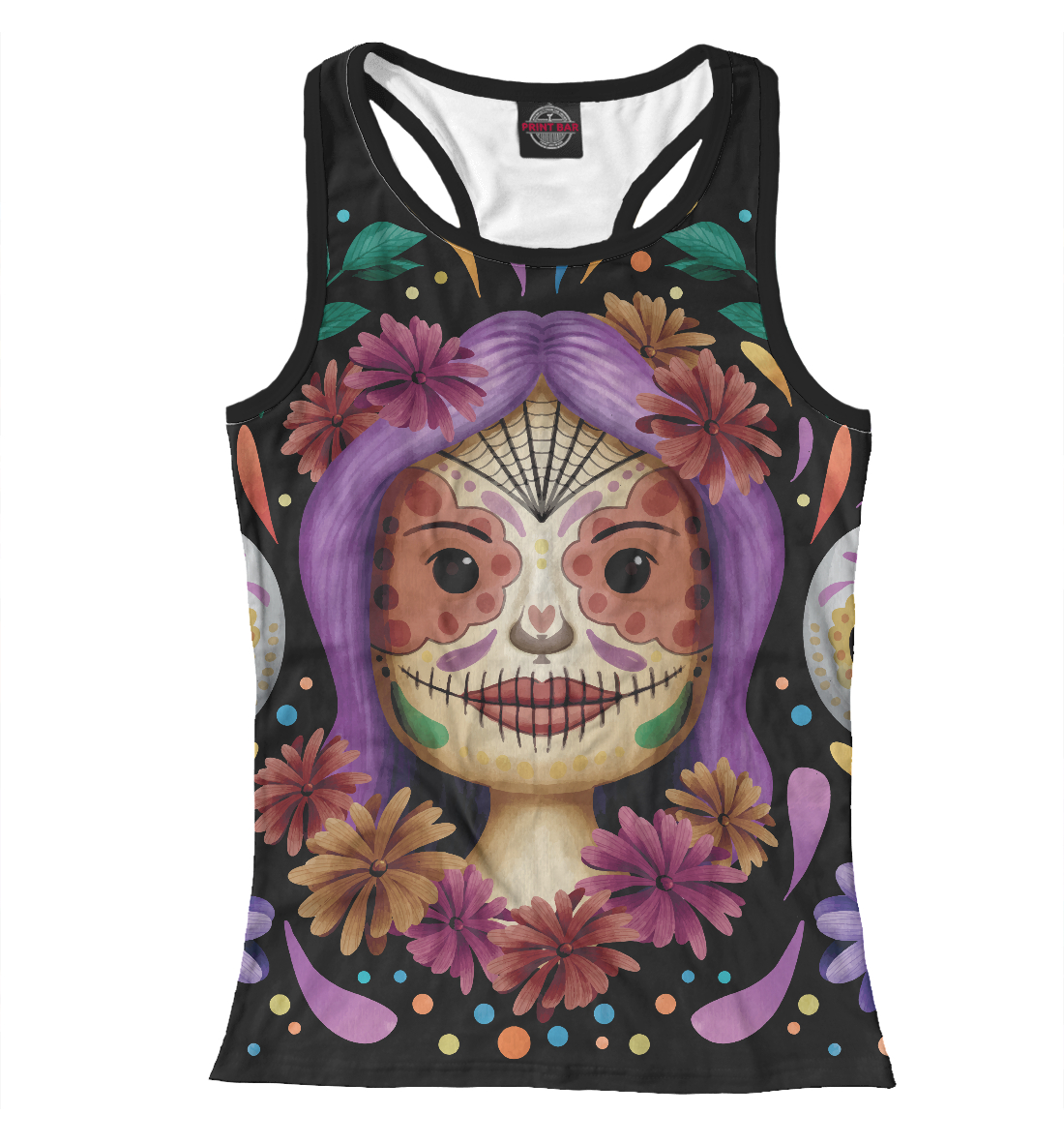Женская майка-борцовка с принтом «День мертвых (узоры)»
