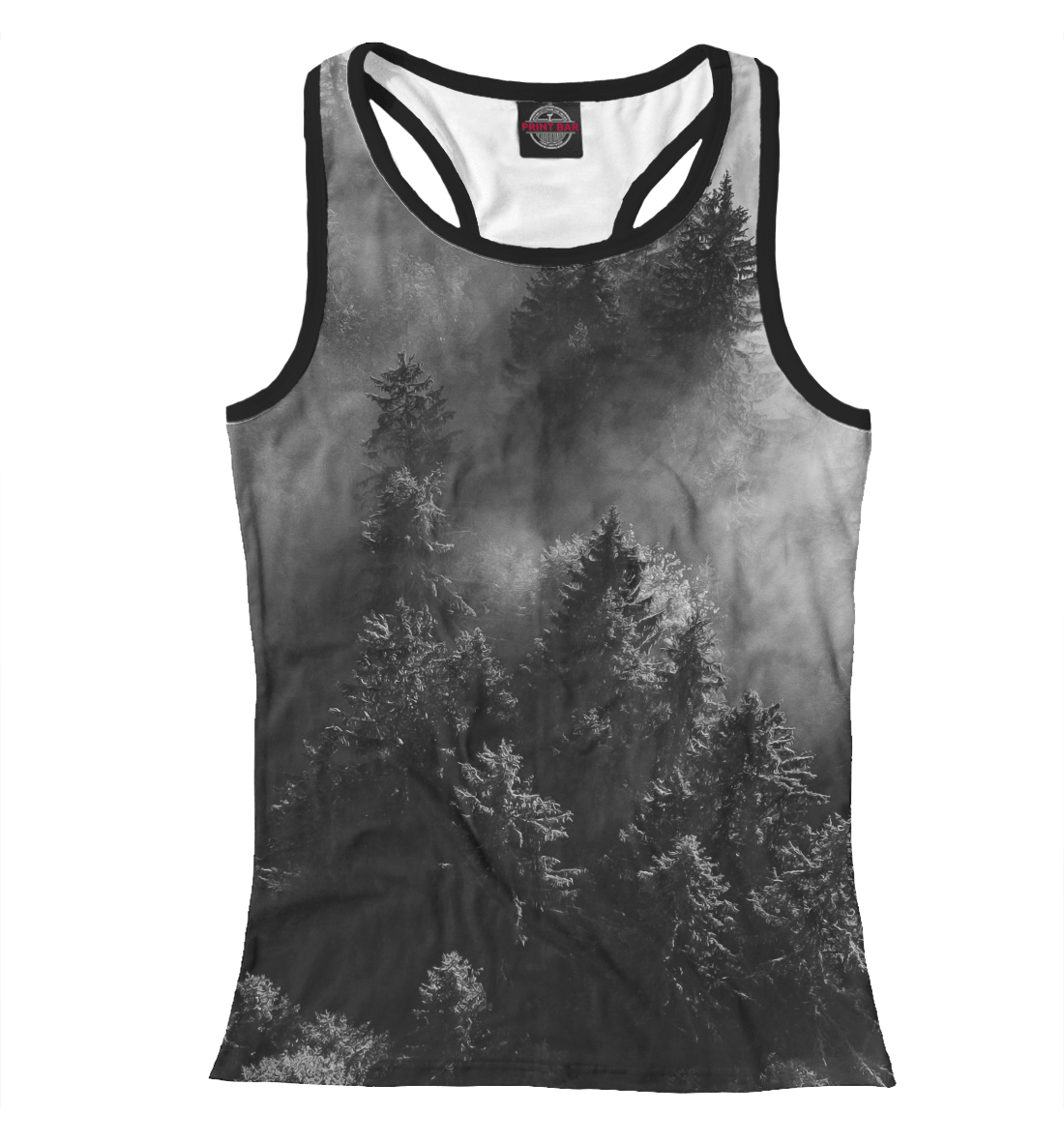Женская майка-борцовка с принтом «Деревья в тумане»