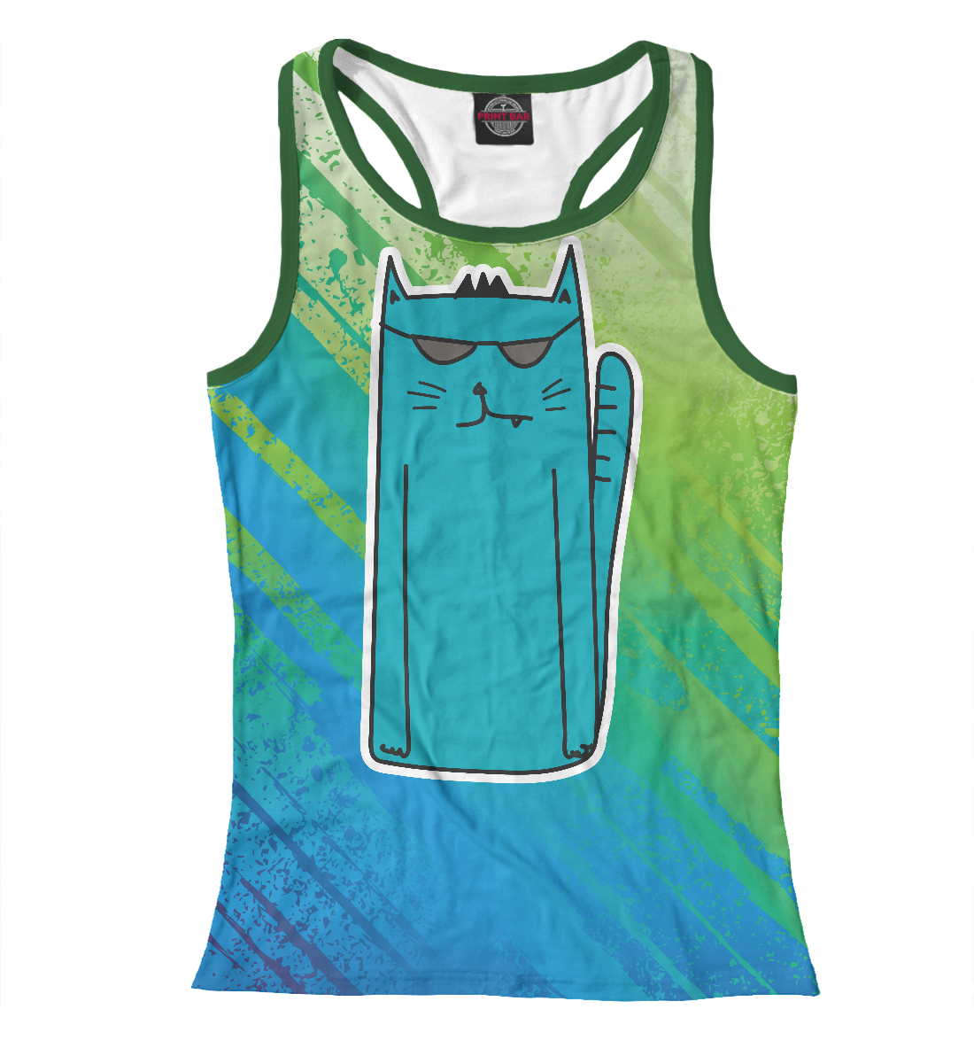 Женская майка-борцовка с принтом «Длинный синий кот»