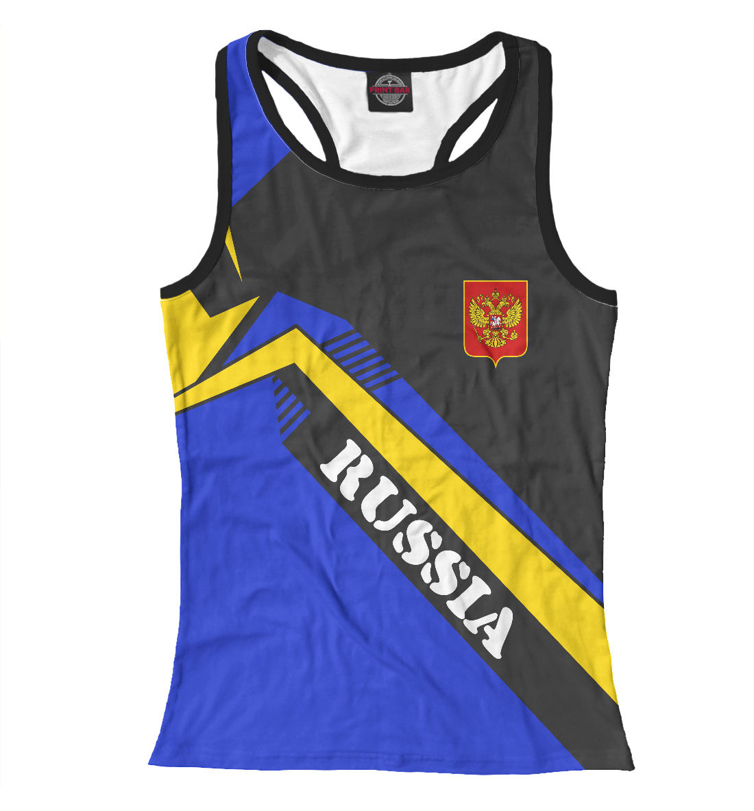 Женская майка-борцовка с принтом «Флаг РФ с жёлтой полосой»