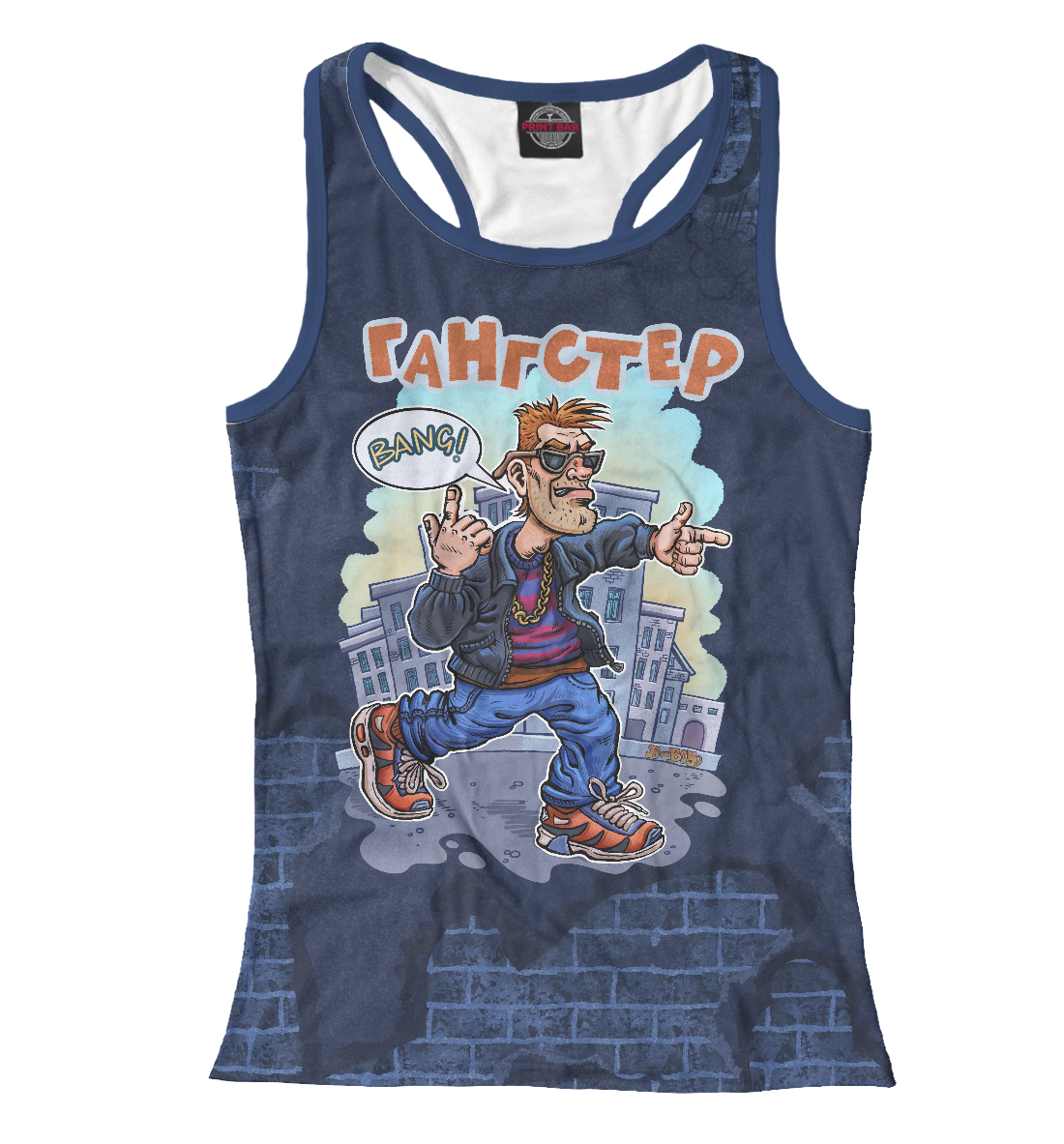 Женская майка-борцовка с принтом «Гангстер идет по городу»