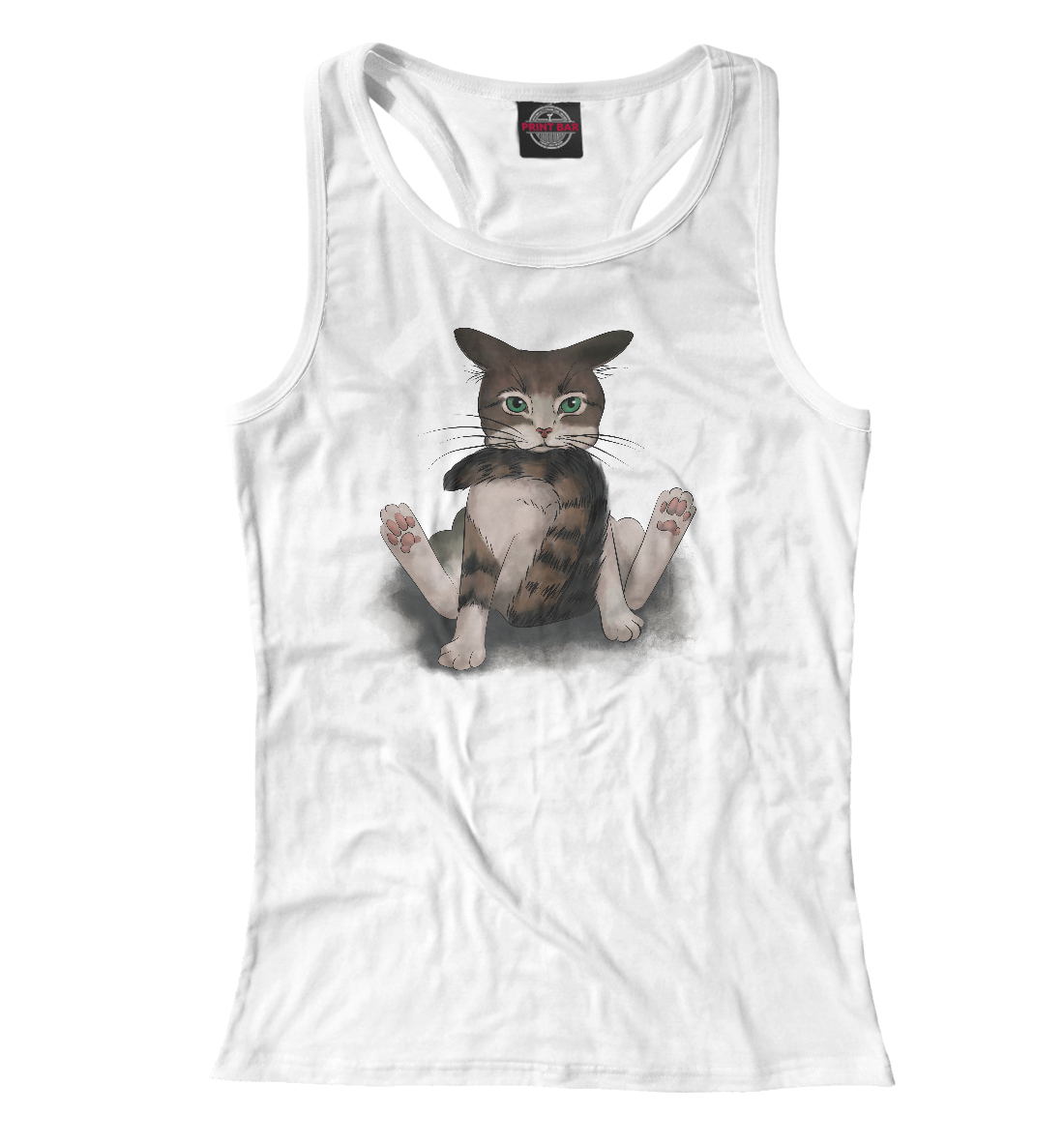 Женская майка-борцовка с принтом «Котик сидит на хвосте»