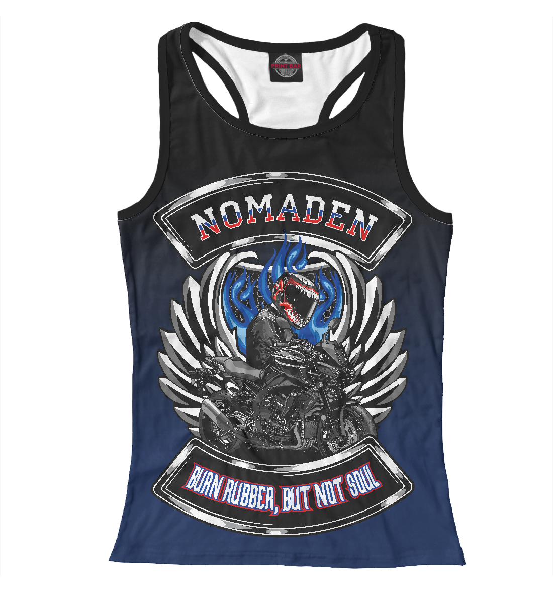 Женская майка-борцовка с принтом «Жги резину, но не душу»