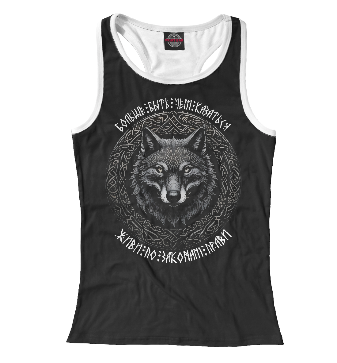 Женская майка-борцовка с принтом «Живи по законам прави / Волк в кольце»