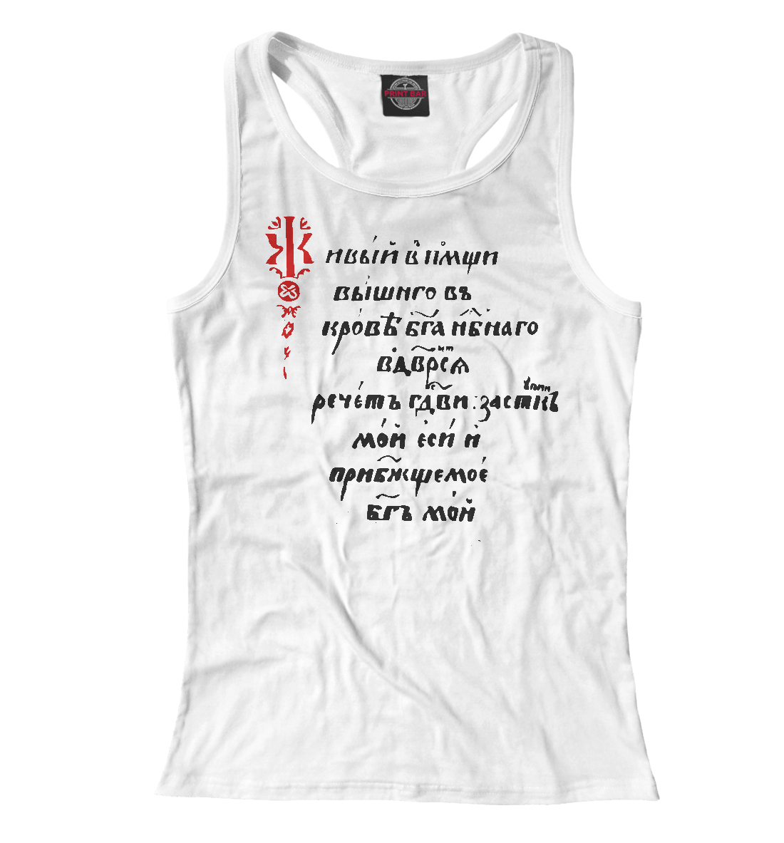 Женская майка-борцовка с принтом «Живый в помощи...»