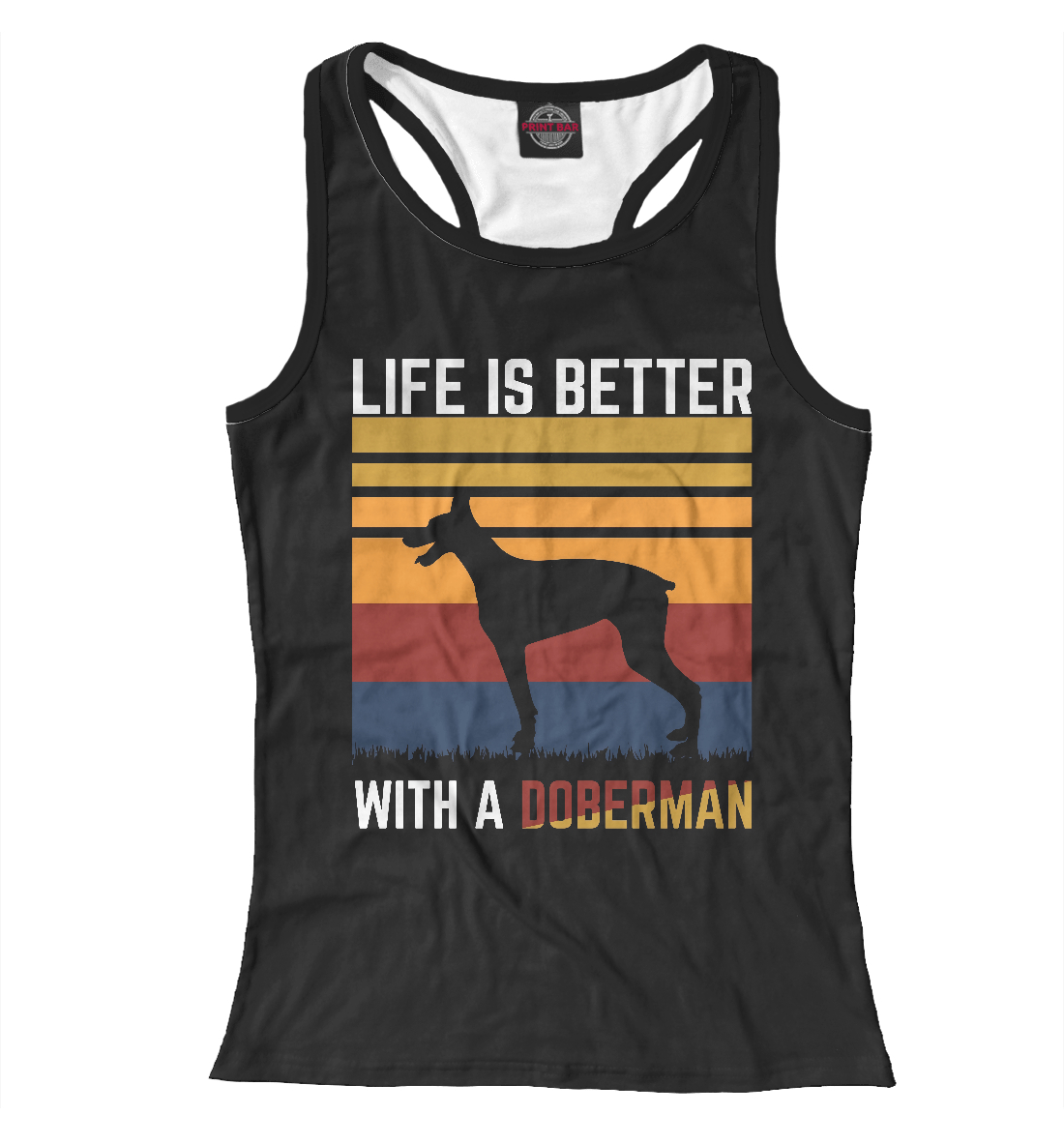 Женская майка-борцовка с принтом «Жизнь лучше с доберманом»