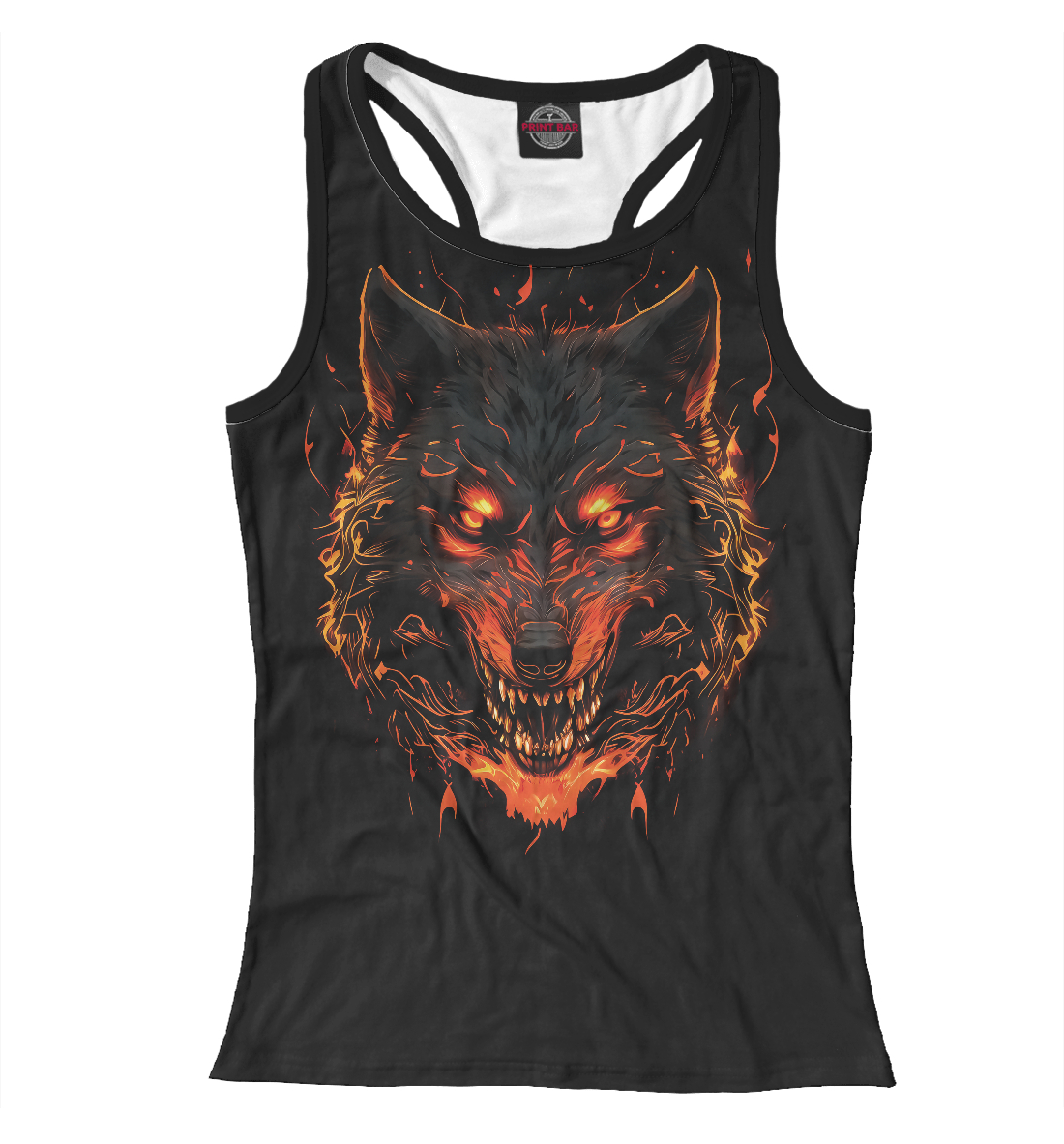 Женская майка-борцовка с принтом «Грозный огненный волк»