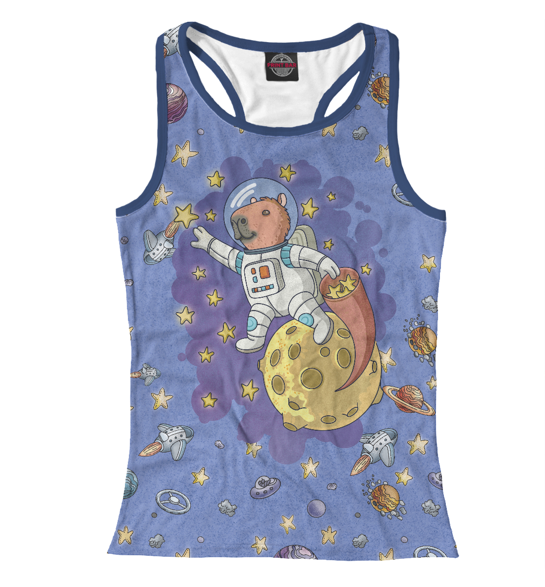 Женская майка-борцовка с принтом «Капибара космонавт в космосе»