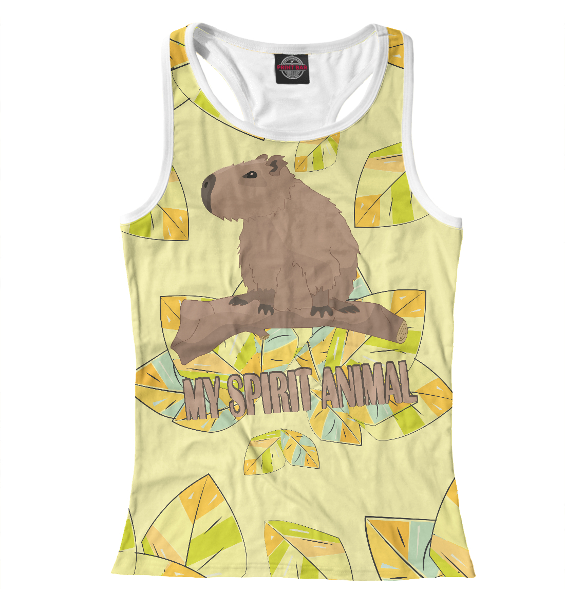 Женская майка-борцовка с принтом «Капибара в джунглях»