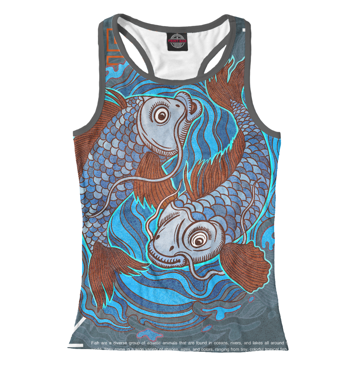 Женская майка-борцовка с принтом «Карпы плавают в воде»
