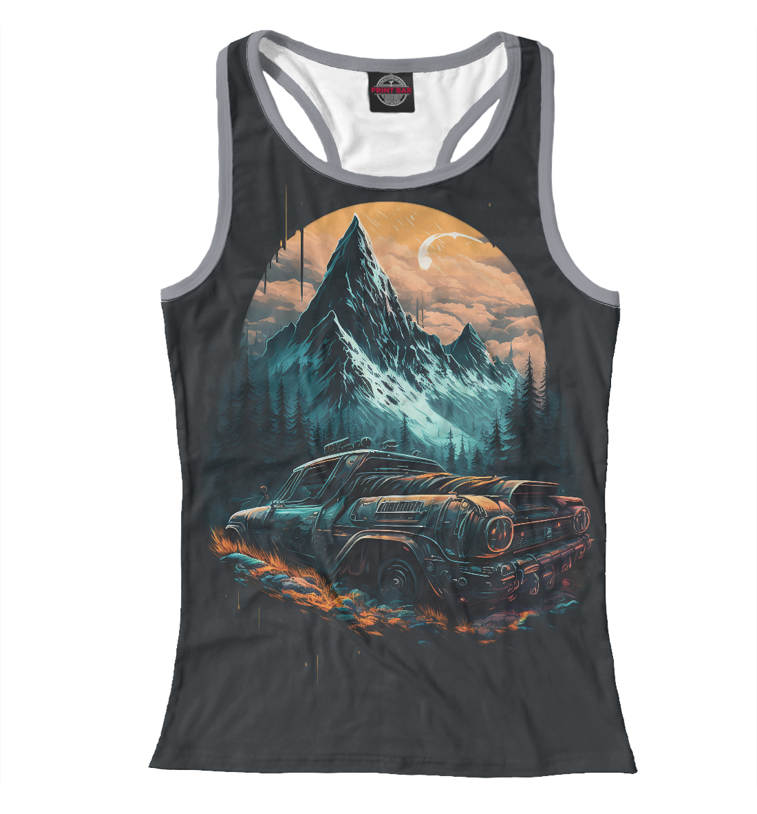 Женская майка-борцовка с принтом «ретро авто и горы»