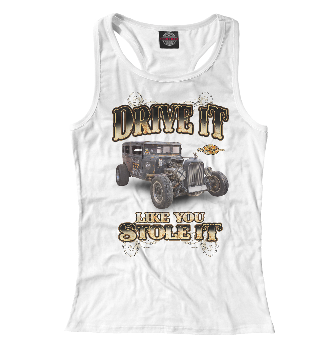 Женская майка-борцовка с принтом «Классический хот род на белом фоне»