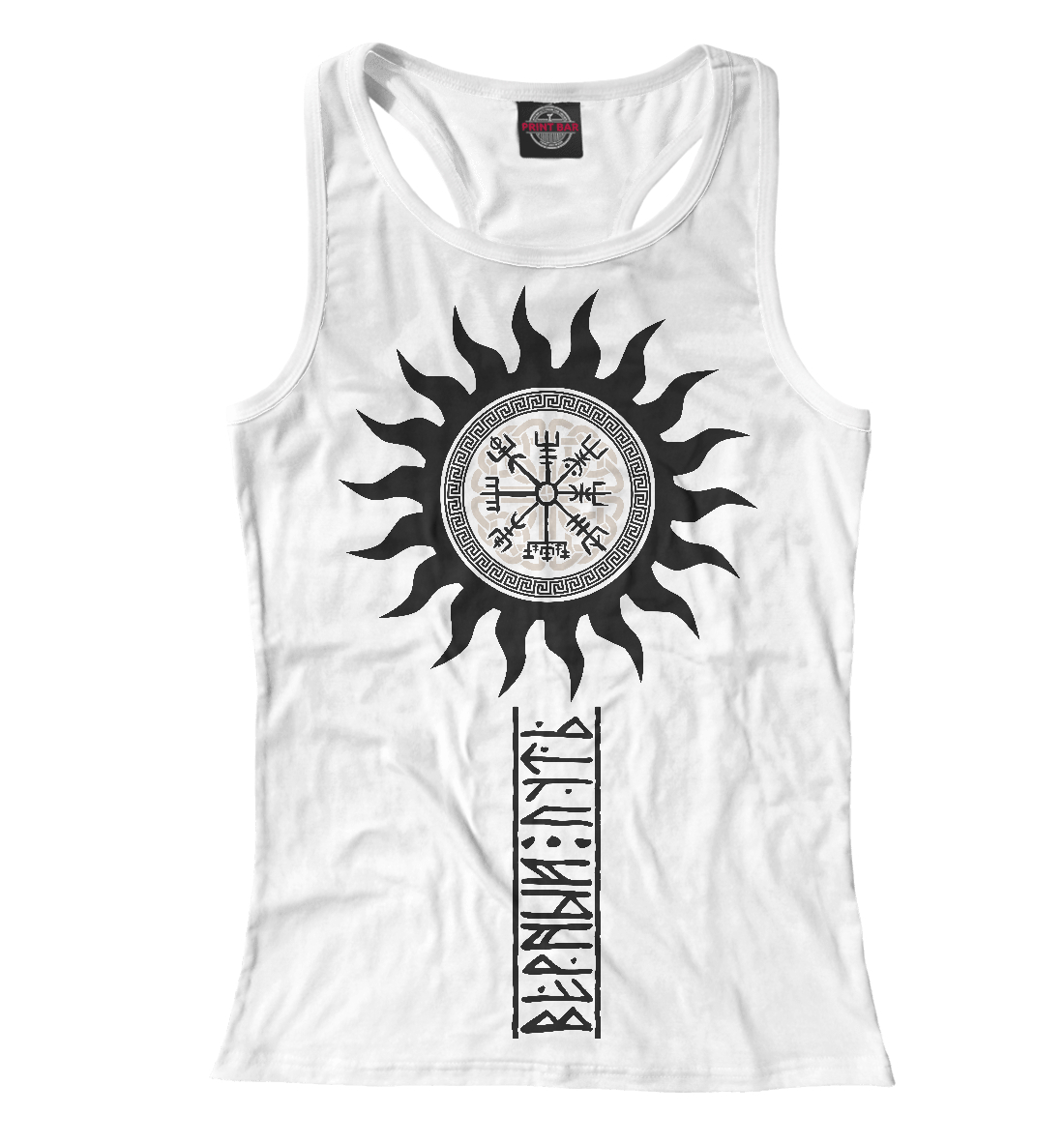 Женская майка-борцовка с принтом «Компас рун воинов - верный путь воина»