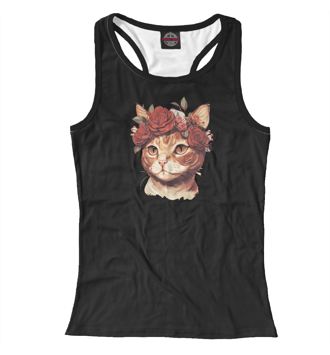 Женская майка-борцовка с принтом «Кошка с цветами»