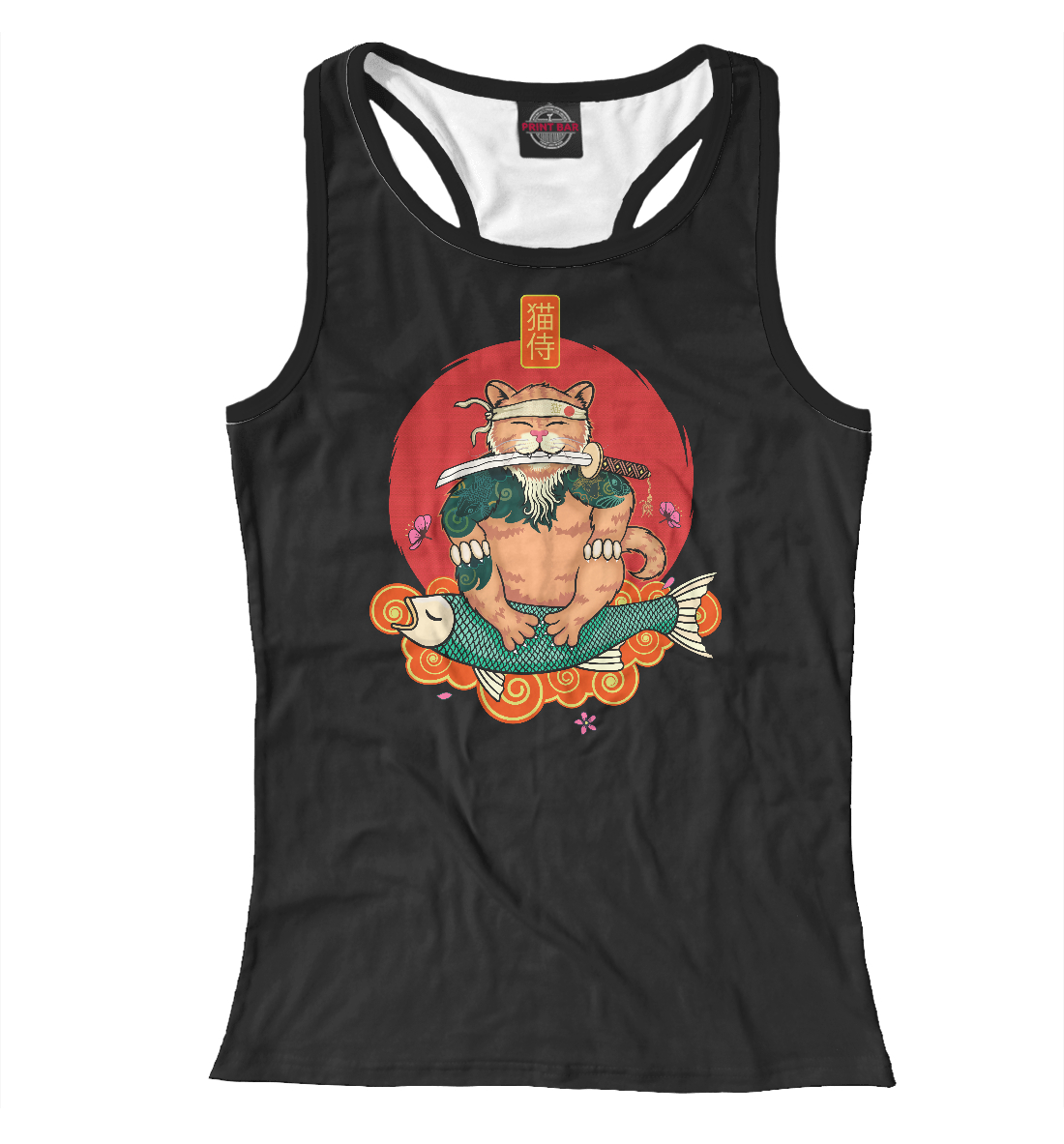 Женская майка-борцовка с принтом «Кот самурай»