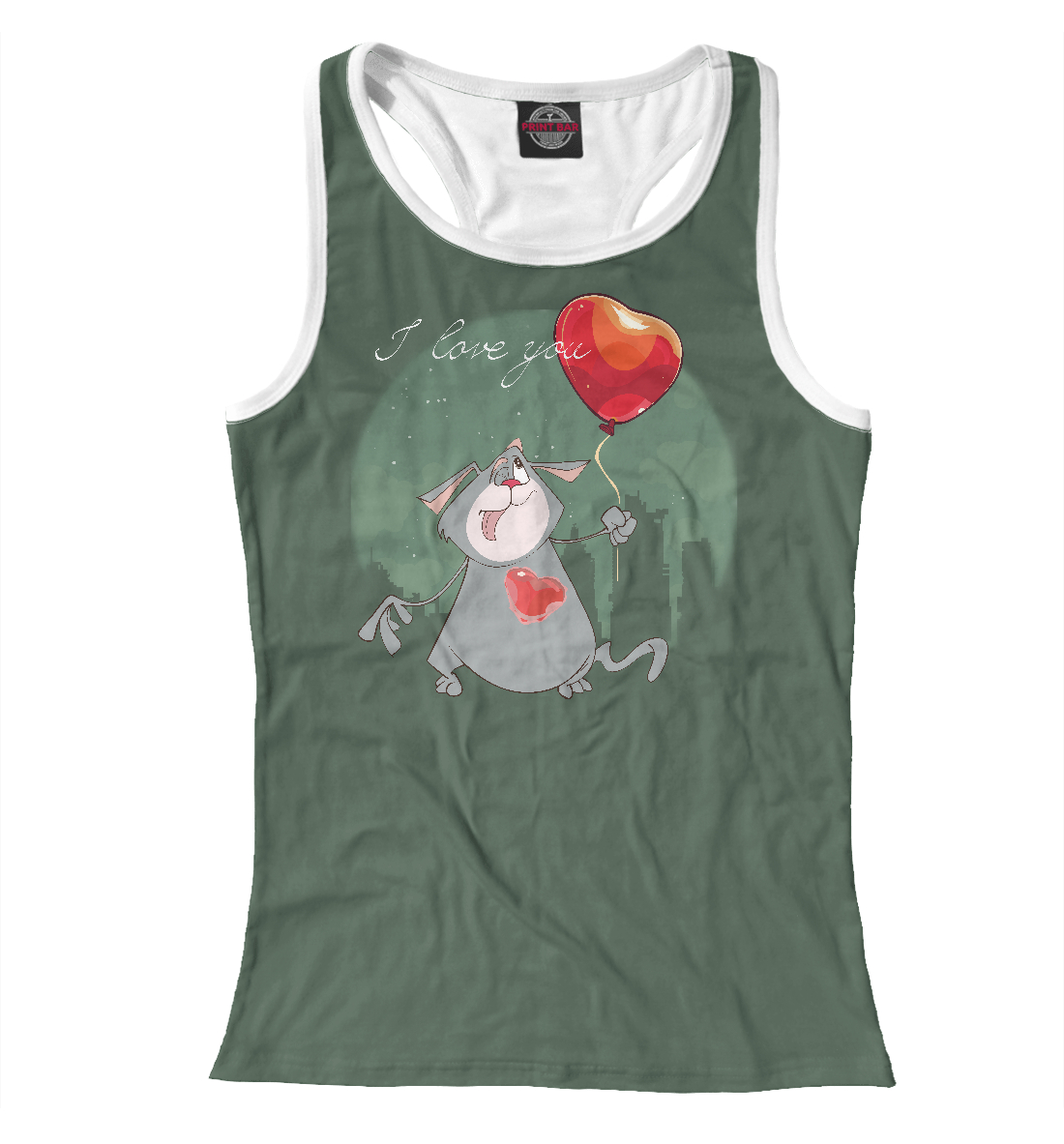 Женская майка-борцовка с принтом «Котик с шариком I love you»