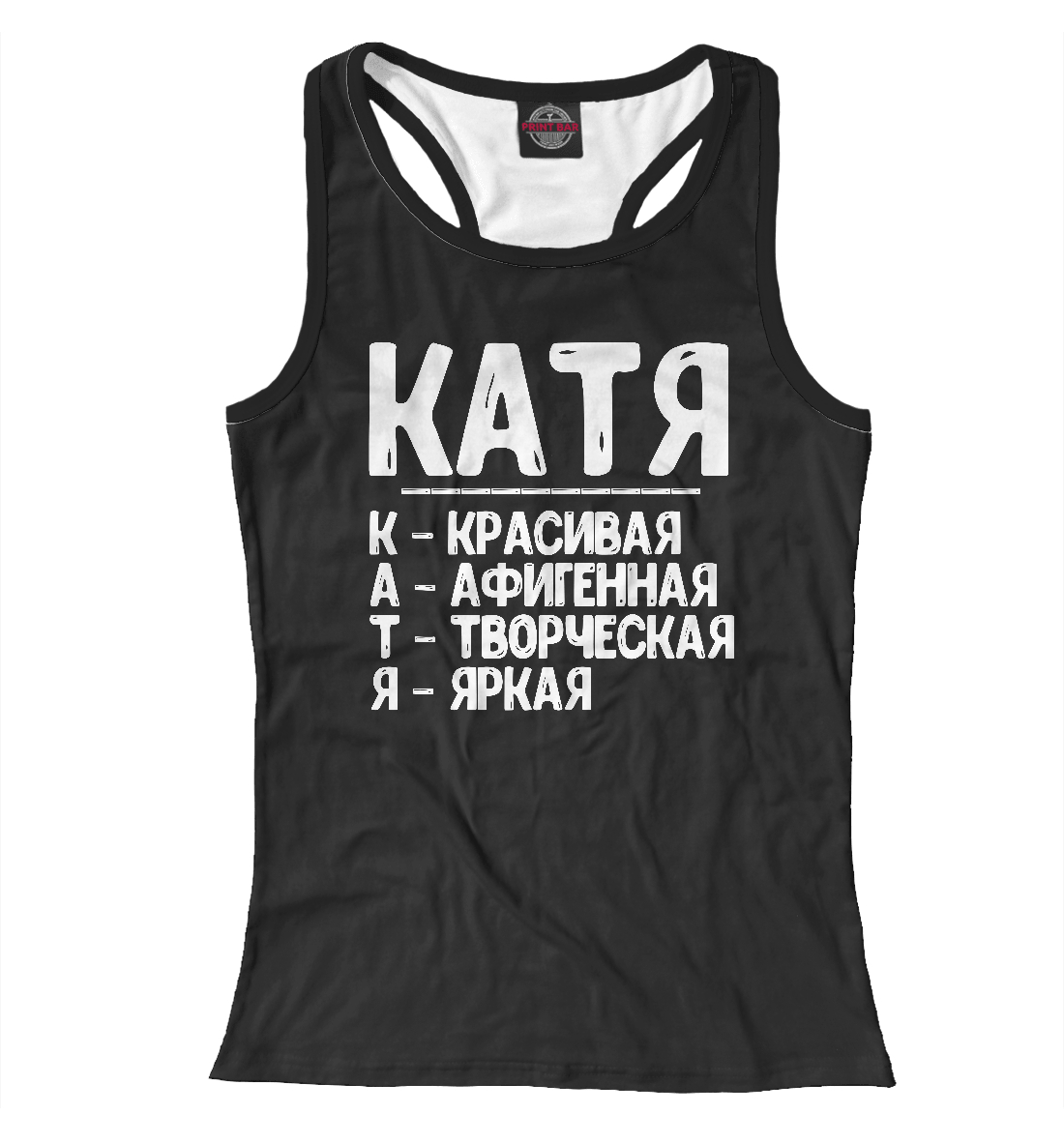 Женская майка-борцовка с принтом «Красивые комплименты Катя»