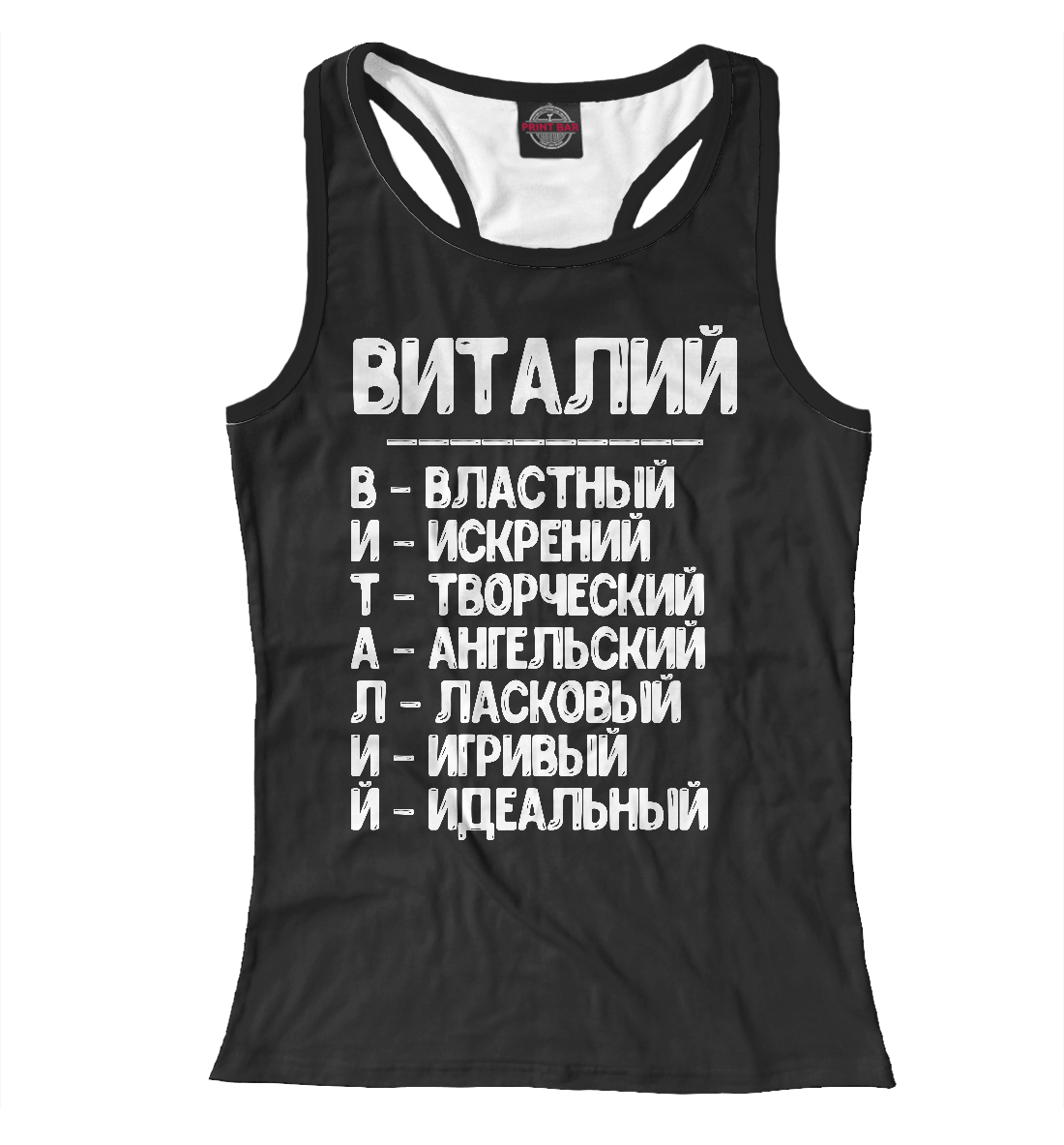 Женская майка-борцовка с принтом «Красивые комплименты Виталий»