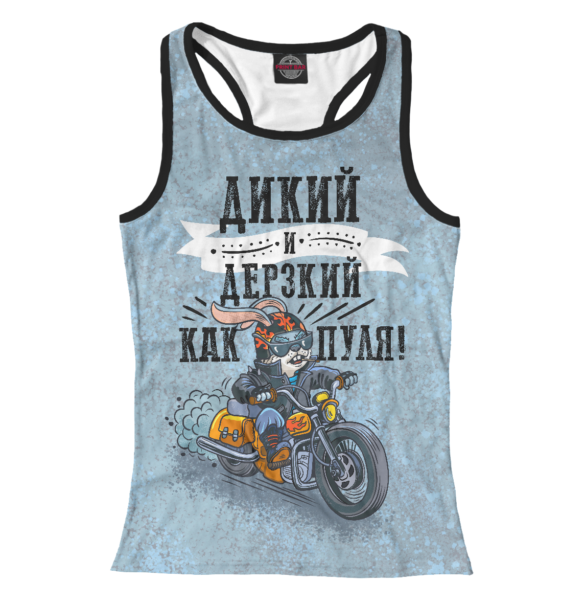 Женская майка-борцовка с принтом «Кролик байкер дерзкий серый»