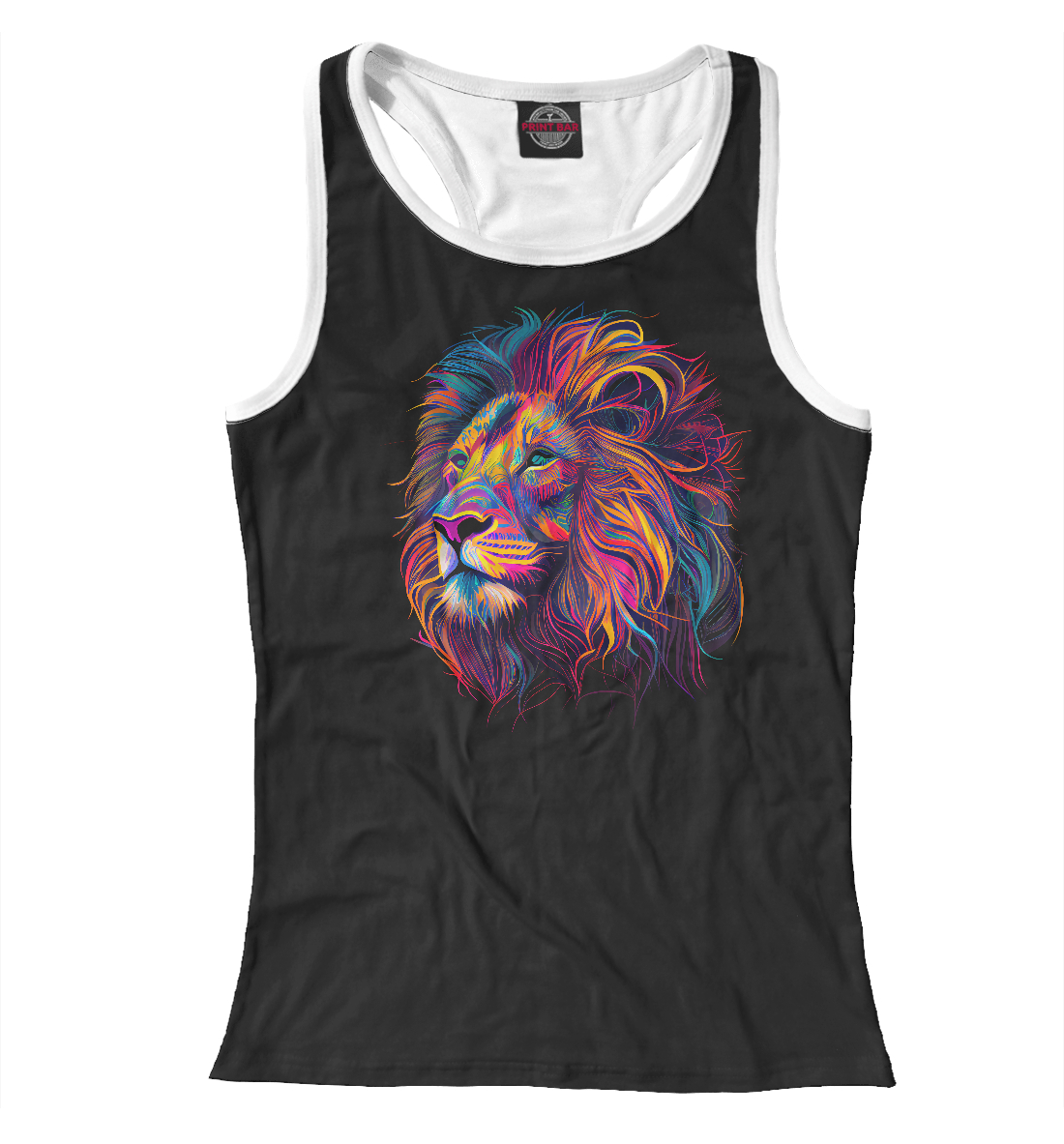 Женская майка-борцовка с принтом «Лев в ярких цветах»