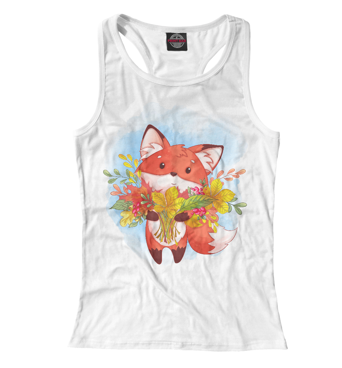 Женская майка-борцовка с принтом «Лисенок с листьями»