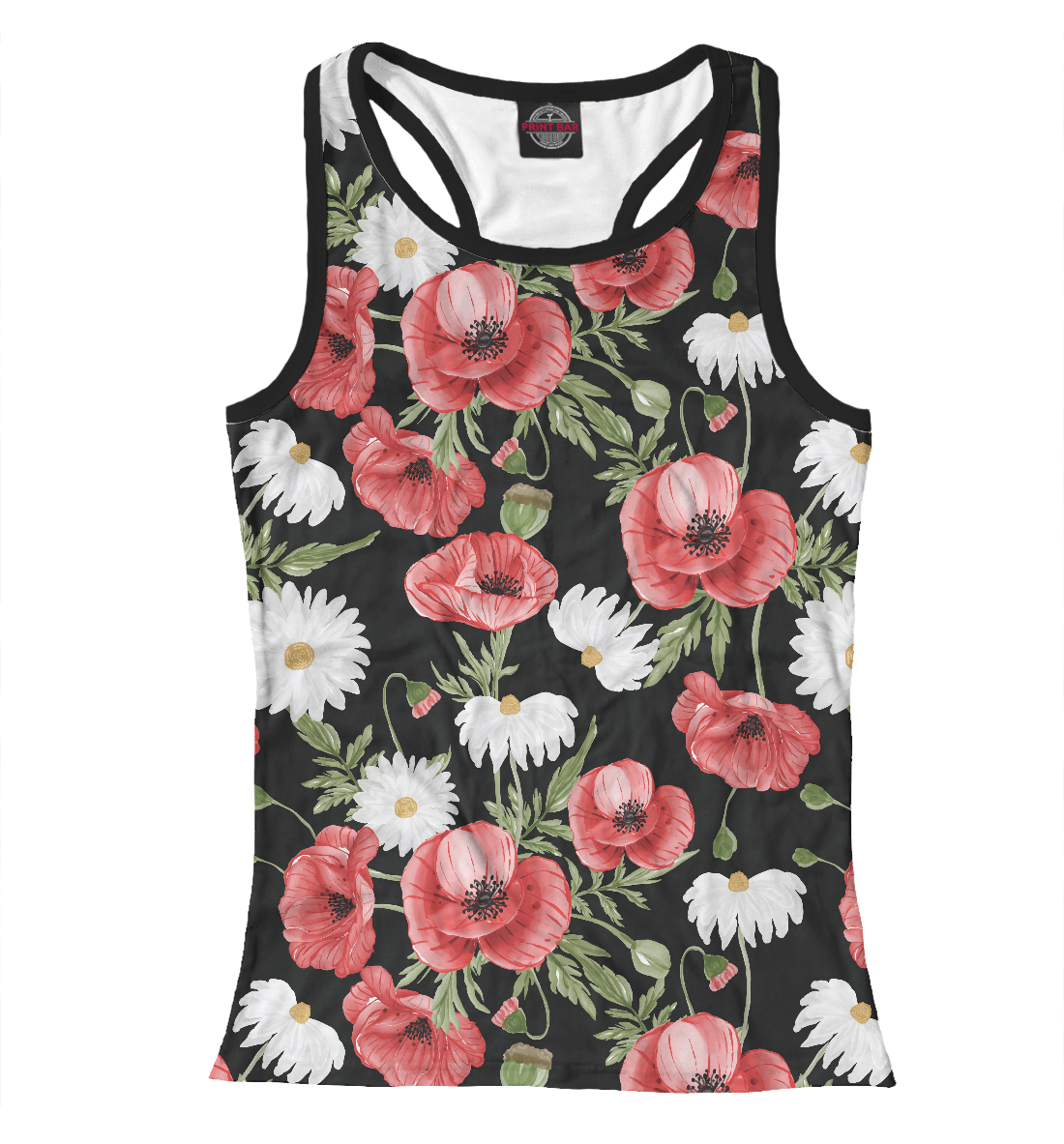 Женская майка-борцовка с принтом «Мако-ромашковое поле»
