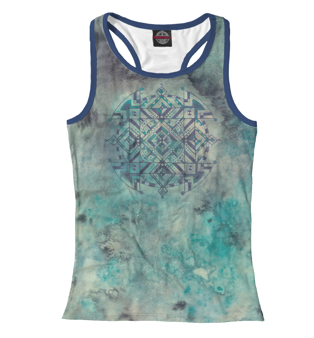 Женская майка-борцовка с принтом «Мандала спокойствия в космосе синяя»
