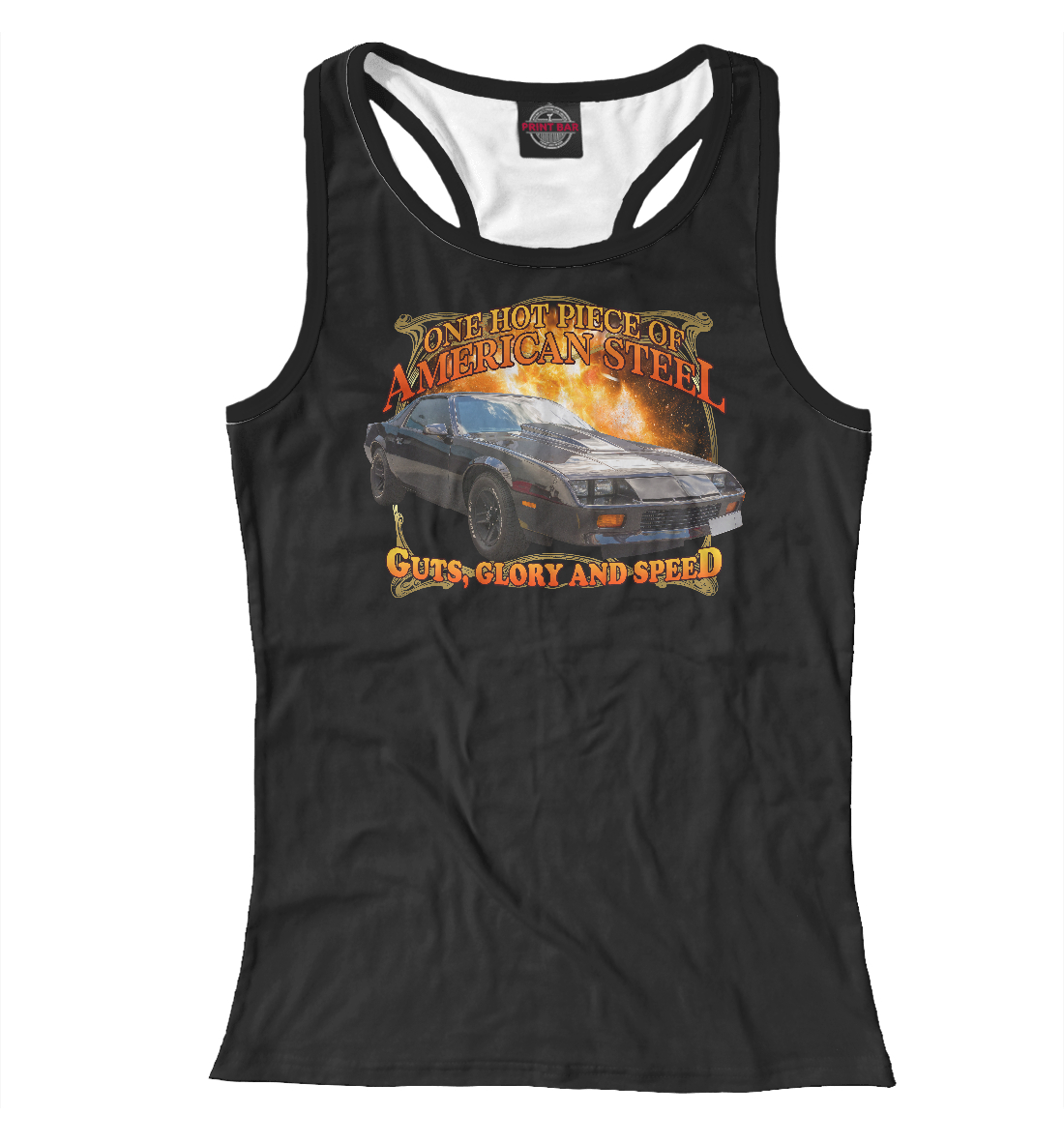 Женская майка-борцовка с принтом «Маслкар на черном фоне»