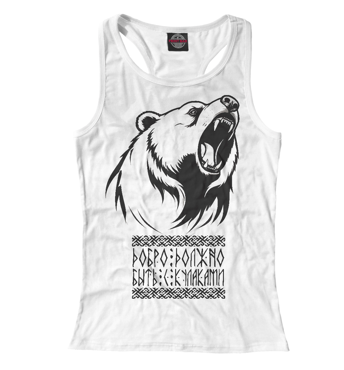 Женская майка-борцовка с принтом «Медведь - добро должно быть с кулаками»