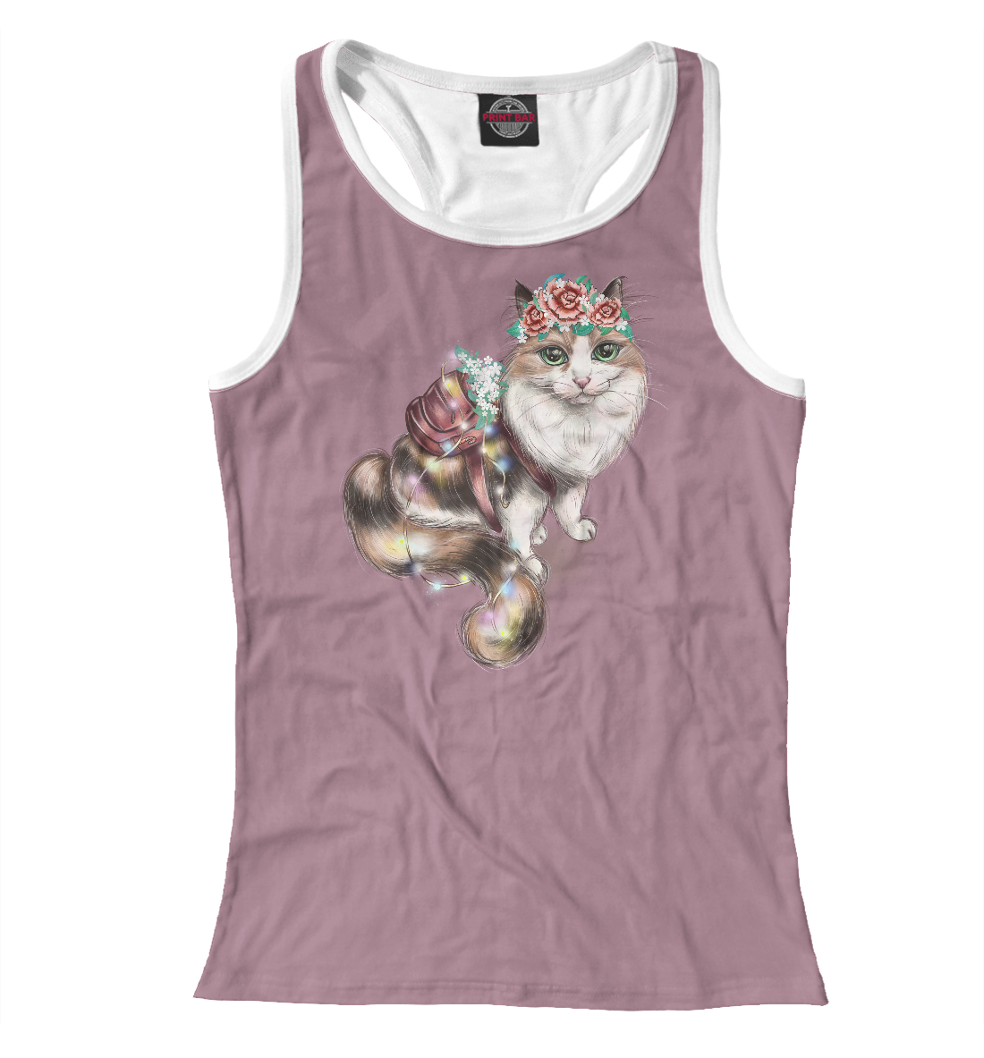 Женская майка-борцовка с принтом «Милая кошечка с цветами (розовый фон)»