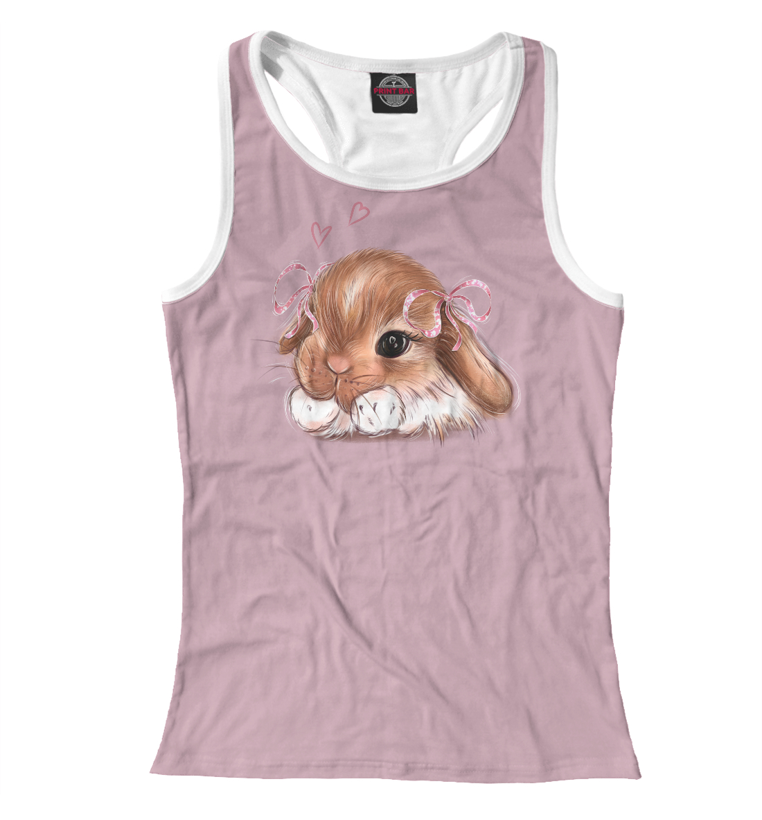 Женская майка-борцовка с принтом «Милая крольчиха (розовый фон)»