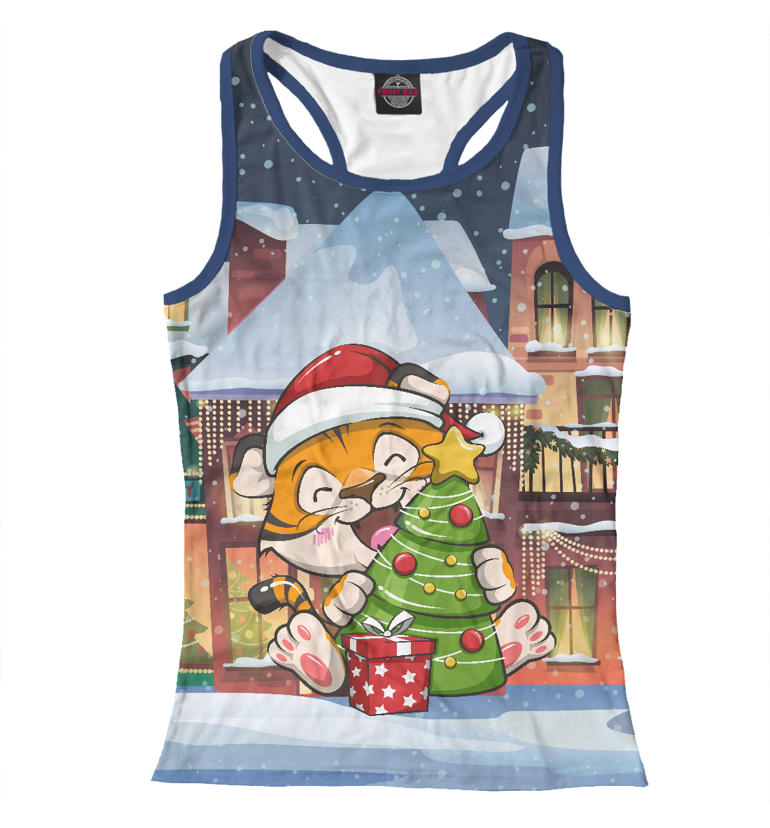 Женская майка-борцовка с принтом «Милый тигренок с елочкой»