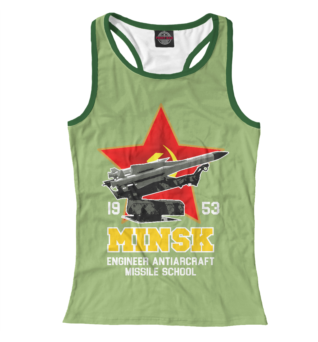 Женская майка-борцовка с принтом «Минское высшее инженерное зенитное ракетное училище ПВО»