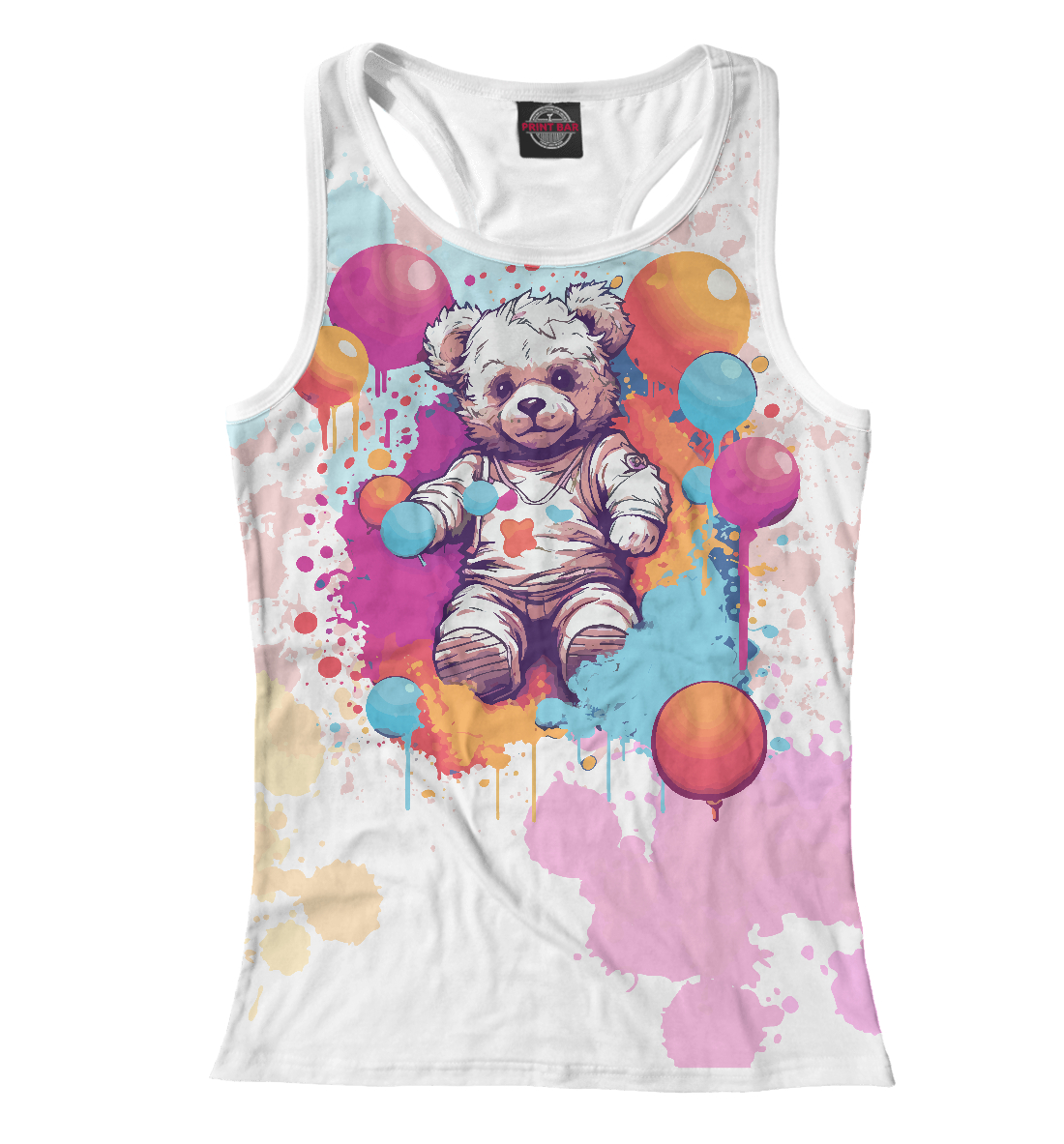Женская майка-борцовка с принтом «Мишка с шариками»