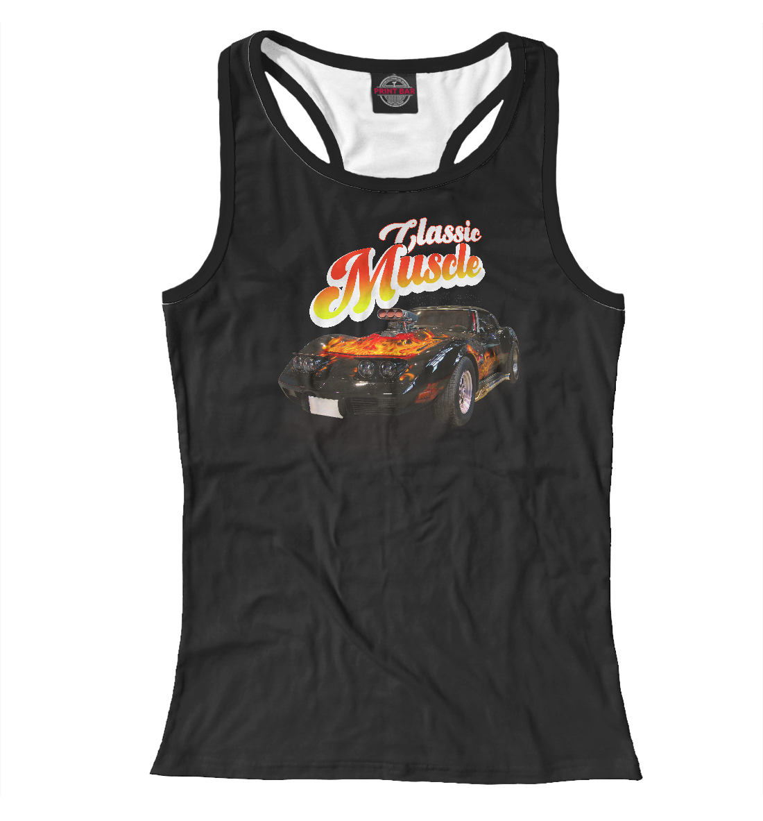 Женская майка-борцовка с принтом «Muscle car Chevrolet Corvette на черном»