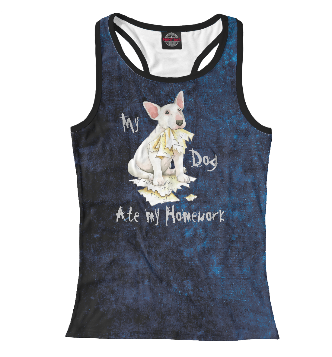 Женская майка-борцовка с принтом «My Bull Terrier Ate My Home»