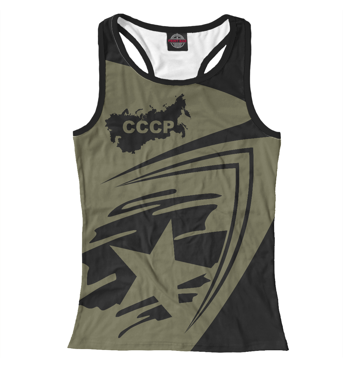 Женская майка-борцовка с принтом «Надпись и карта СССР на оливковом фоне»